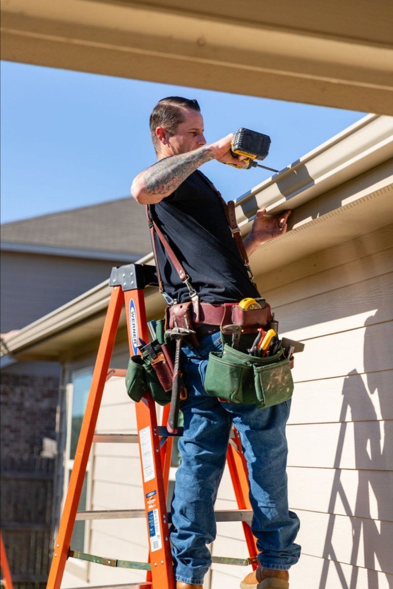 "They are very busy. It took a month to get on their schedule but well worth the wait. They showed up when they said they were coming. They installed rain gutters on my ranch house on 155 acres with colors of gutters and down spouts that matched the colors of my house. They set up my rain barrels that I had stored in my storage shed.. I met with 5 different companies about gutters and decided on this company because it was family run.Their prices were best with tight knit leaf protectors over the gutters. One of the men working that day when asked did special things for me because he had a high ladder to clean a high window for me, to paint an edge of my patio cover and fixed the final things on my fire pit. They are exceptional people. Tyler, the owner, who I initially met with first gave me a drawing of the length of the gutters to be put in. Which no other company did. Tyler's wife, Shelley, is exceptional to work with. She is responsive as is Tyler , easy to talk to and always helpful. I highly recommend this company. They truly care for the people they do work for and even before hired they are exceptional to talk to about doing the job." ~ Peggy Kelm in